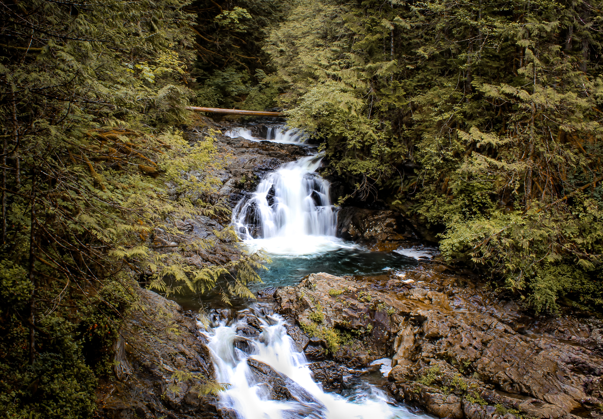Andrew and I used the falls as an opportunity to shoot more long-exposure shots, and after a few missteps, we captured what we were looking for. The most enjoyable section of the falls to shoot was the second stop. At the second stop, the water in this waterfall was far more detailed than the first and allowed for more of an airbrushed look. The top of the trail was the perfect viewing point for the peak of Wallace Falls, the largest point in the falls and a major photo op.